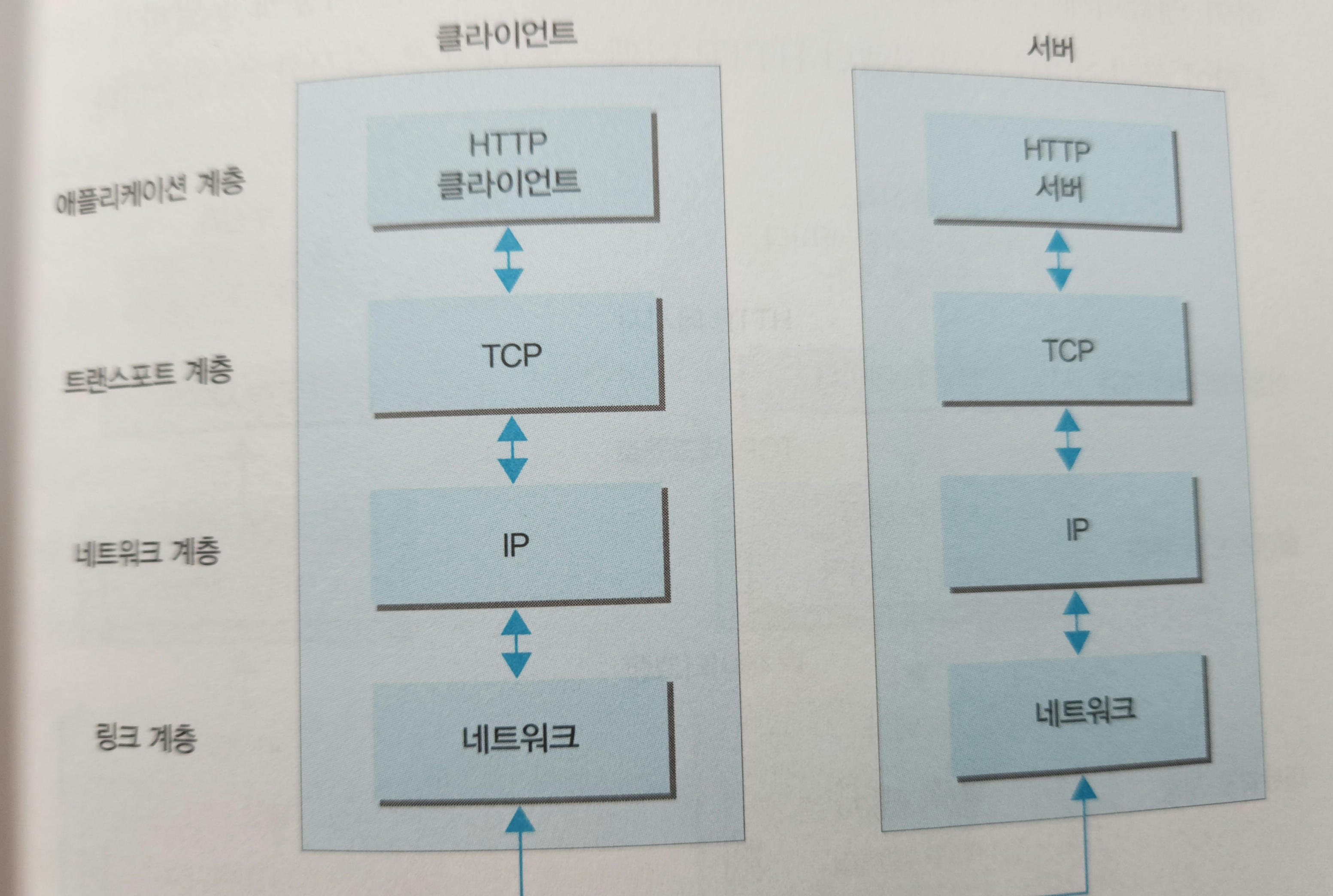 TCP/IP는 애플리케이션 계층, 트랜스포트 계층, 네트워크 계층, 링크 계층 이렇게 4계층으로 나뉘어 있습니다.
